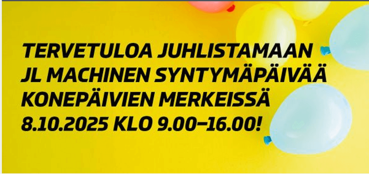 JL Machine Oy on saavuttanut 15 vuoden virstanpylvään, ja tätä merkittävää hetkeä juhlistamme konepäivien merkeissä yhdessä asiakkaidemme ja yhteistyökumppaneiden kanssa. Samalla avaamme Oulussa uudet, entistä monipuolisemmat korjaamotilamme!